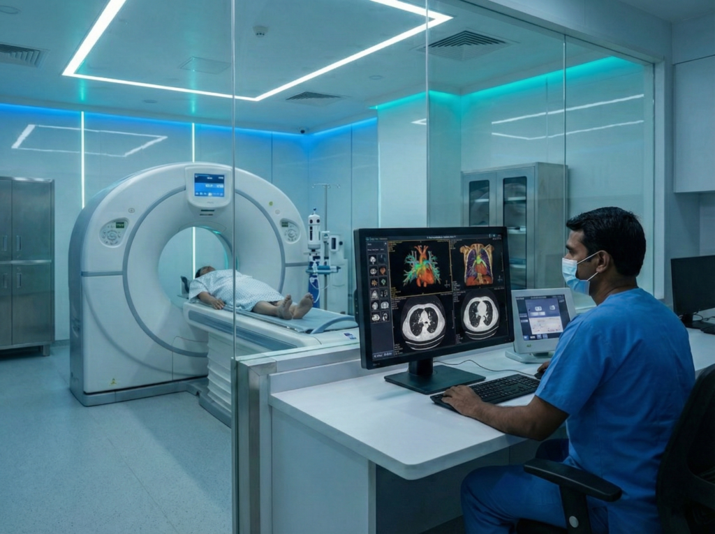 • 🏥 Multiple services under one roof – Digital X-Ray, CT Scan, Sonography, Pathology, ECG & 2D Echo
